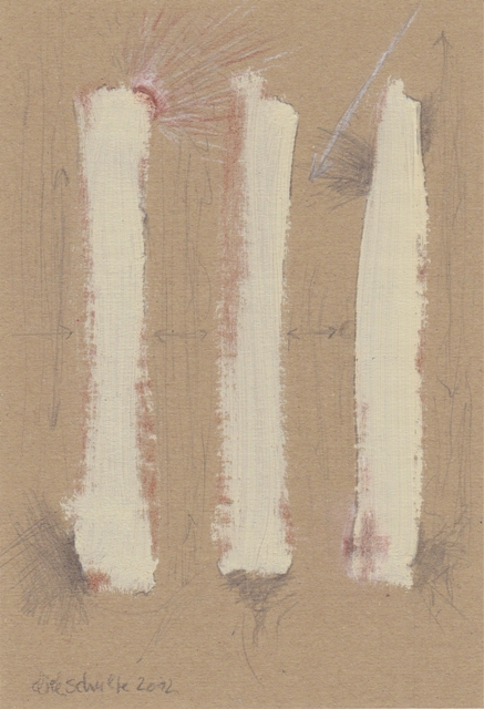 Original-Arbeiten aus der 2012 begonnenen Serie "Alea Kinesis (Skizzen zum Wärmetausch)";